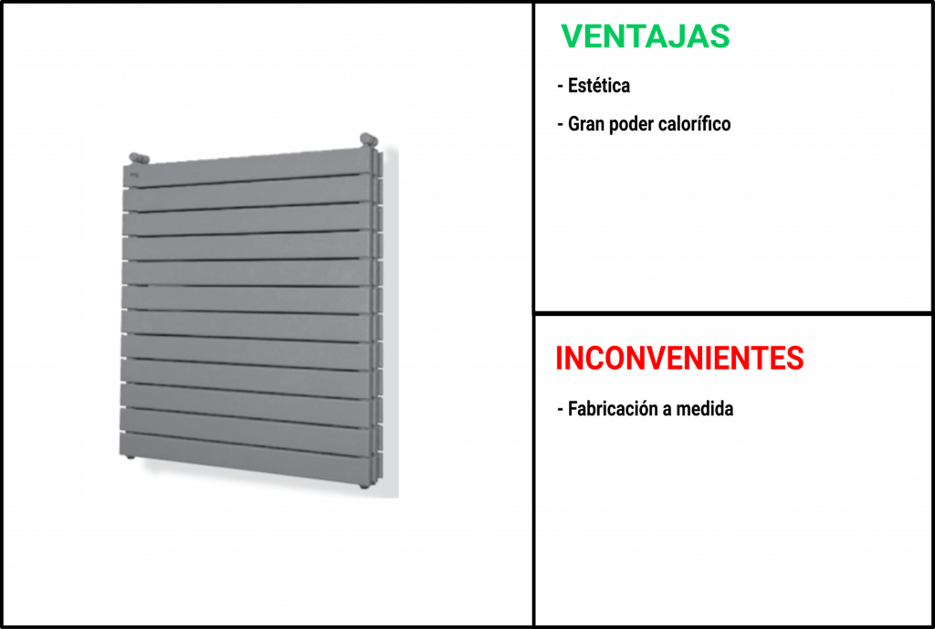 Este tipo de radiador admite multitud de diseños y medidas, con longitudes que pueden ir de suelo a techo. Normalmente se fabrican en tubos de acero y a la medida deseada.